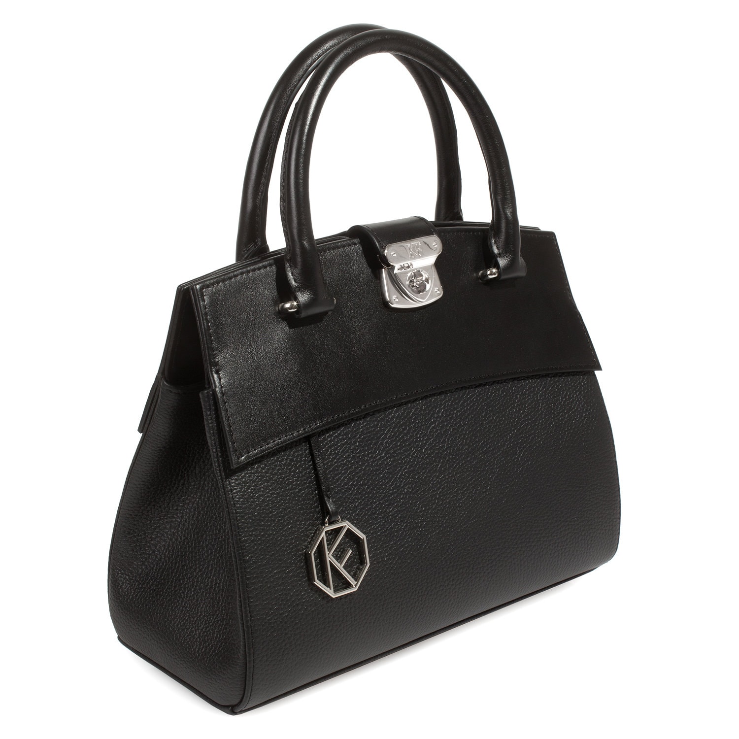 Leather Top Handle Bag, Black Leather Handbag Top Handle, Women's Leather Bag KF-4925