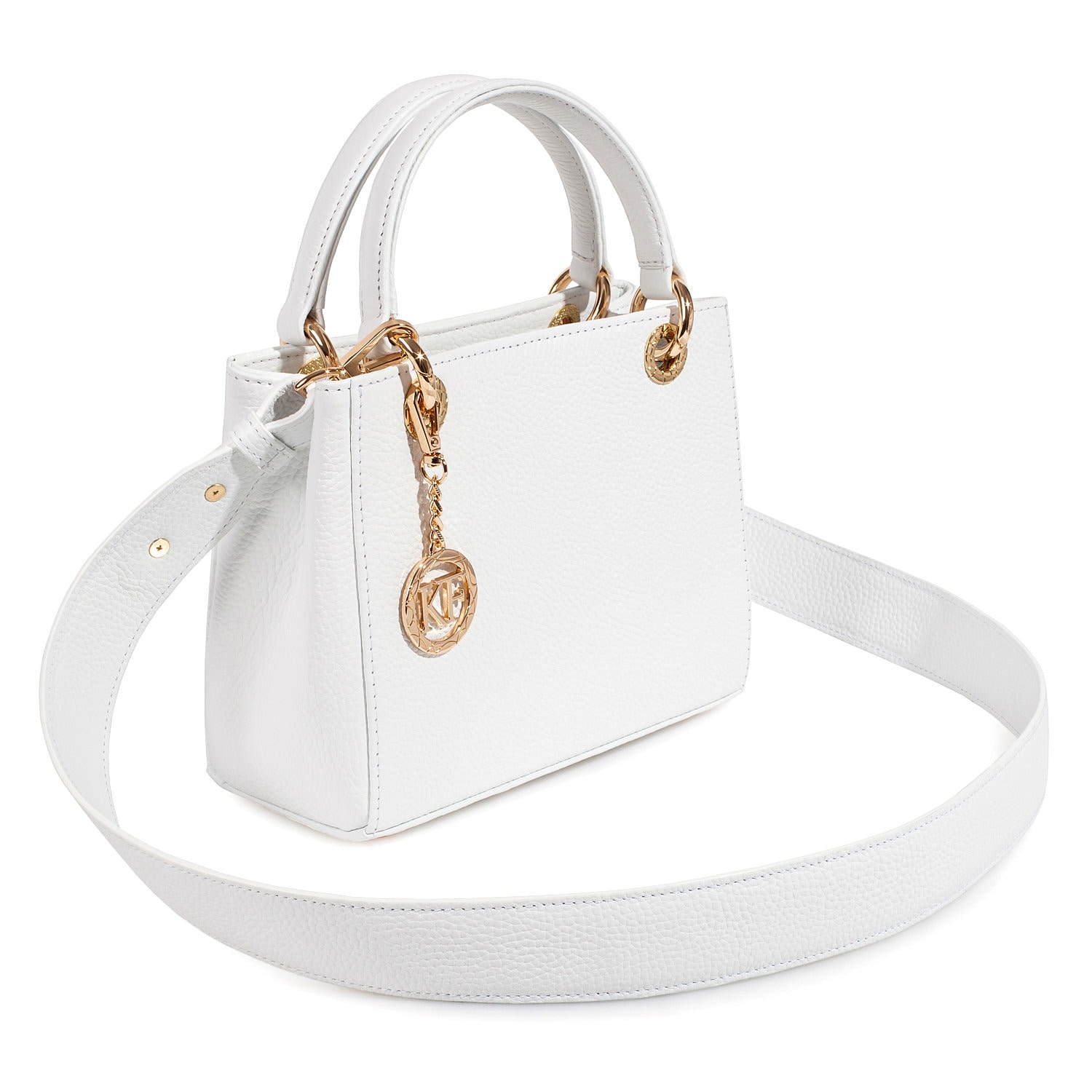 Black-white bag on a chain made of genuine leather crocodile print from Ukrainian designer Katerina Fox. This model is designed for women who value elegant design combined with functionality and comfort. High-quality and reliable equipment guarantees a long service life of bags. All accessories for bags Katerina Fox produces the same factory as for Michael Kors, Calvin Klein, DKNY and other well-known brands. Inside the bag there are two spacious compartments and two patch pockets, the bag closes with magnet buttons.