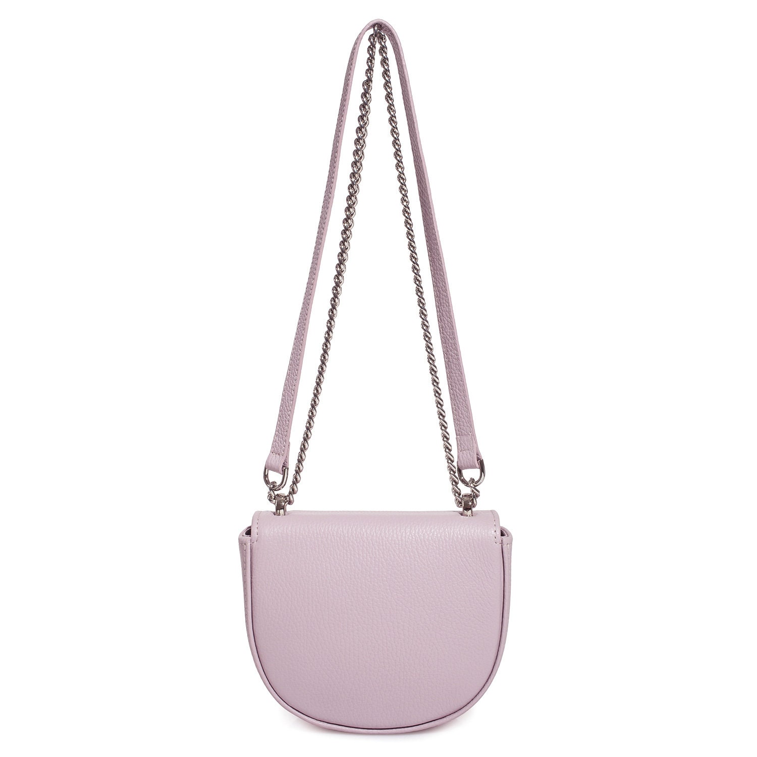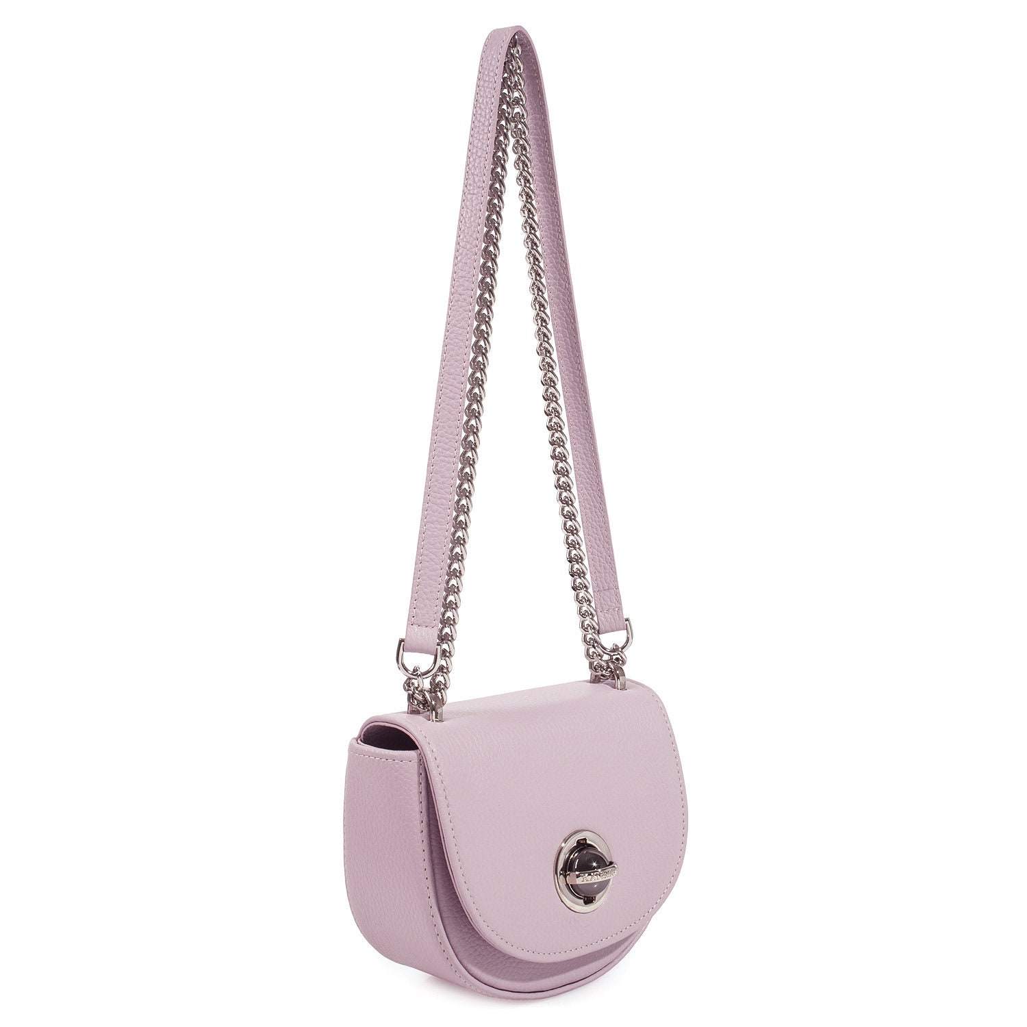Light purple genuine leather woman shoulder bag from ukrainian designer Katerina Fox. Fashionable and elegant modern bag KF for bright girls and women. This bag is able to attract attention and highlight your exquisite taste. The internal space of a bag is equipped with one spacious compartment and one patch-pocket. The bag is closed with a clasp. There is a long handle that allows you to wear the bag on the shoulder. The kit also includes a storage bag.