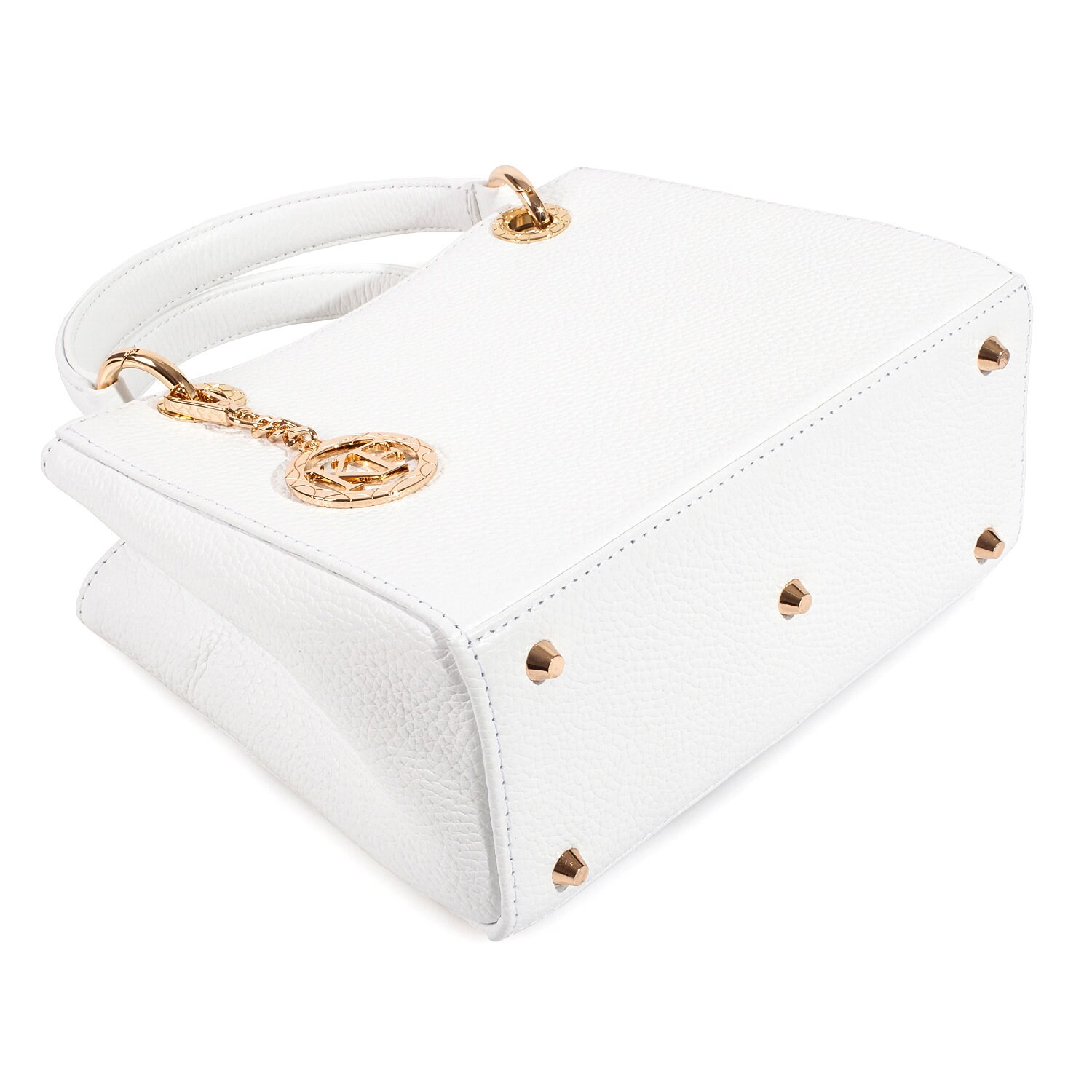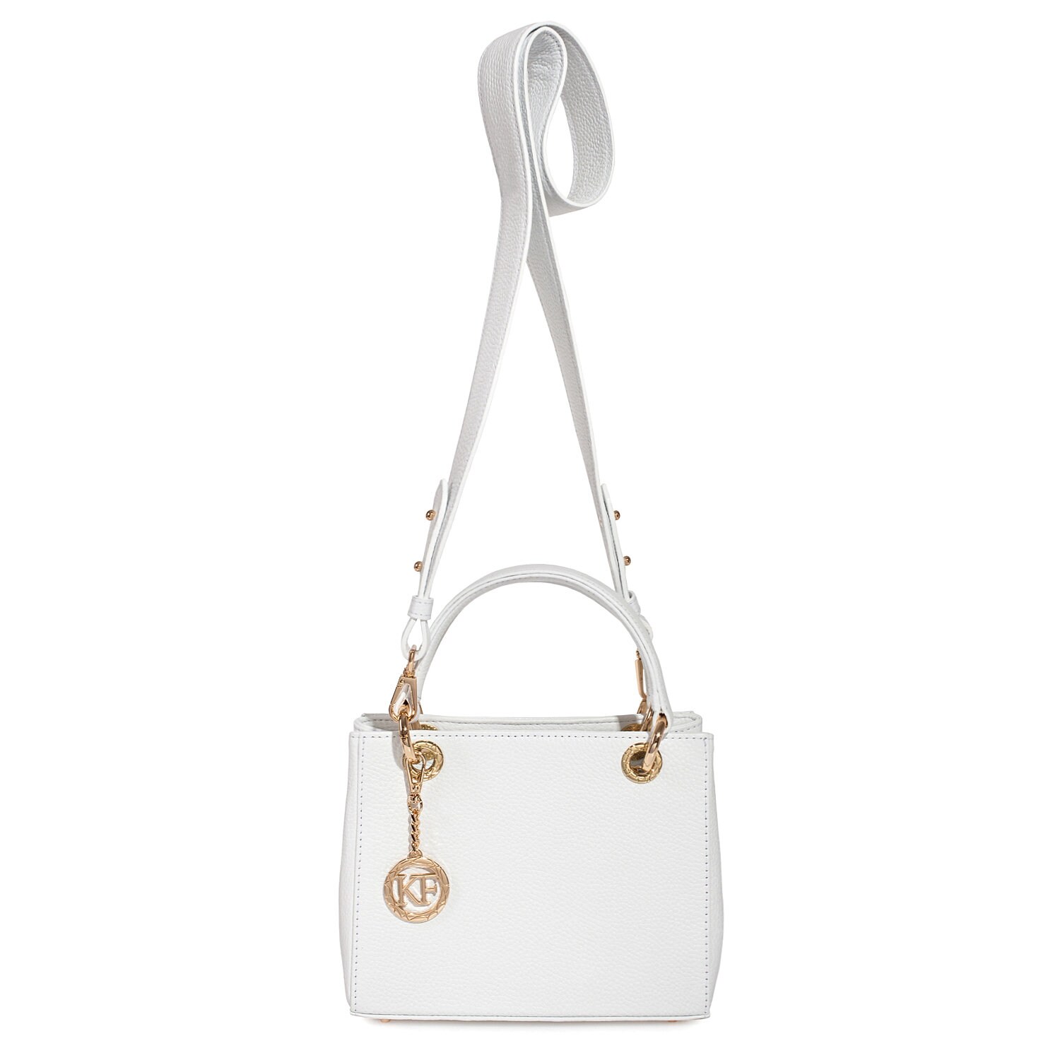 Delivery: In most cases our goods are shipped by FedEx or Ups Express. On rare occasions the goods might be shipped by Ukrposhta. The clients should check in advance an estimate of the amount of customs duty and value added tax.White genuine leather handbag from ukrainian designer Katerina Fox. This model is designed for women who appreciate the sleek design combined with functionality and comfort. Despite the simplicity, this bag stands out thanks to a triangular insert in black suede leather. High-quality and reliable hardware ensure long service bags. Inside the bag are three spacious compartments, one with zip, two patch pockets and one zippered pocket closes with a zipper. The bottom of the bag protected by metal feet.